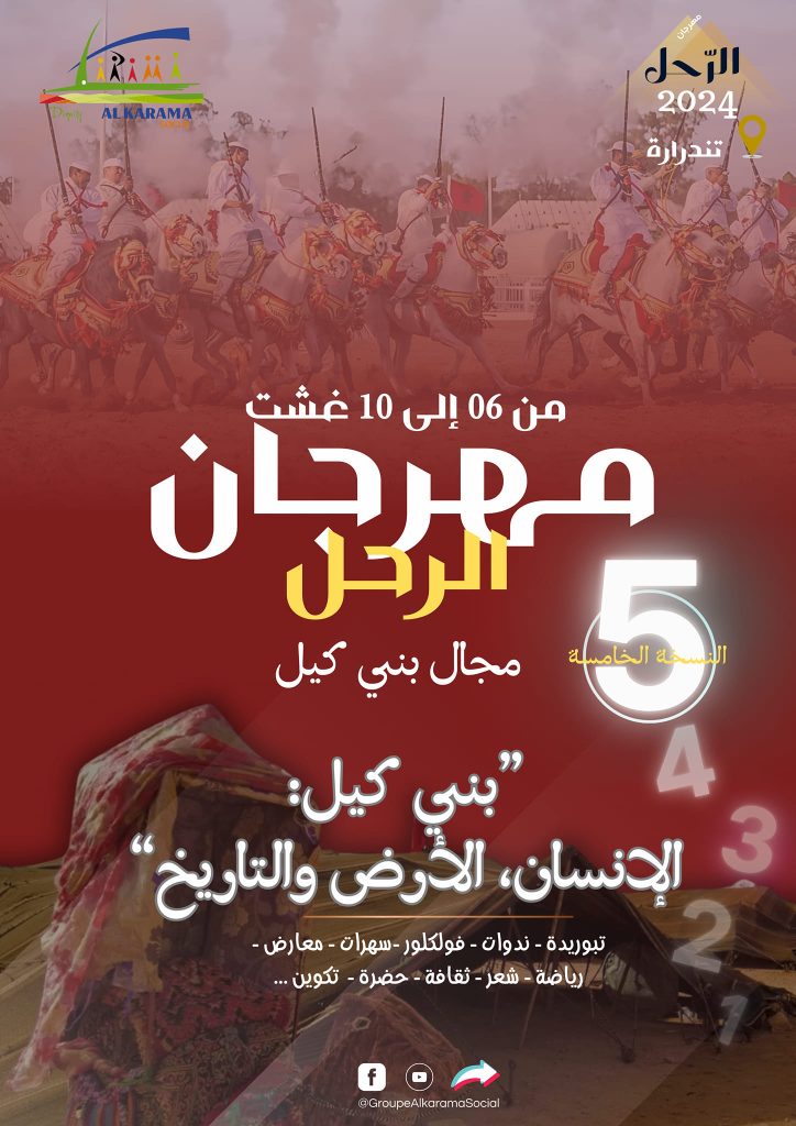 Sous le thème « Beni Guil: L’Homme, la Terre et l’Histoire », nous vous invitons à assister à la cinquième édition du Festival des Nomades qui se tiendra à Majal Beni Guil à Tendrara du 06 au 10 août.